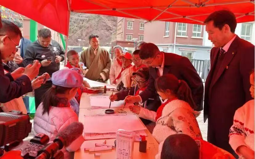 书法唐卡体验区里,孩子们在党员干部的耐心指导下,一笔一画临摹练习,近距离感受中华优秀传统艺术的独特魅力,在笔墨丹青中传承文化根脉、汲取精神力量。