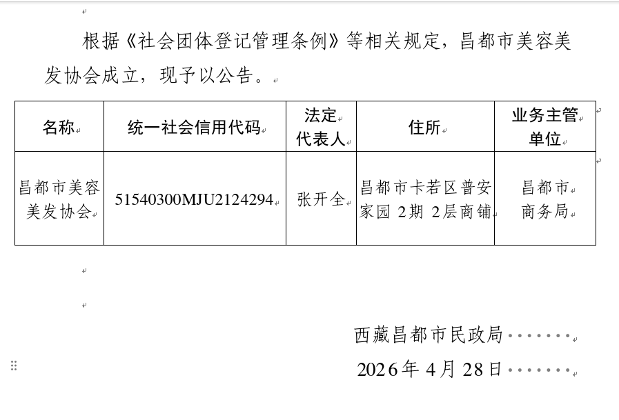 昌都市民政局公告第2026003号社会团体成立公告