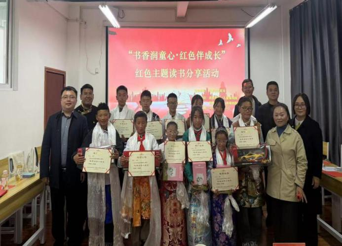 读书分享环节氛围浓厚、暖意融融。活动中,2名党员干部带头领学红色经典,结合昌都革命历史,深情诵读红色篇目、分享读书感悟,发挥示范引领作用;12名儿童代表依次登台,自信展示阅读成果,或诵读红色诗词,或讲述昌都革命先辈的英雄事迹,或分享学习老西藏精神的心得体会,用真挚的语言、饱满的情感,抒发了对党的感恩、对祖国的热爱、对家乡的眷恋,充分展现了新时代少年儿童朝气蓬勃、积极向上、奋发进取的精神风貌,也彰显了民政党员干部以学促行、关爱儿童的良好作风。活动最后,出席领导为参与活动的儿童颁发荣誉证书及学习奖品,鼓励孩子们坚持阅读、热爱阅读,养成“多读书、读好书、善读书”的良好习惯,在书香浸润中锤炼品格、成长成才。