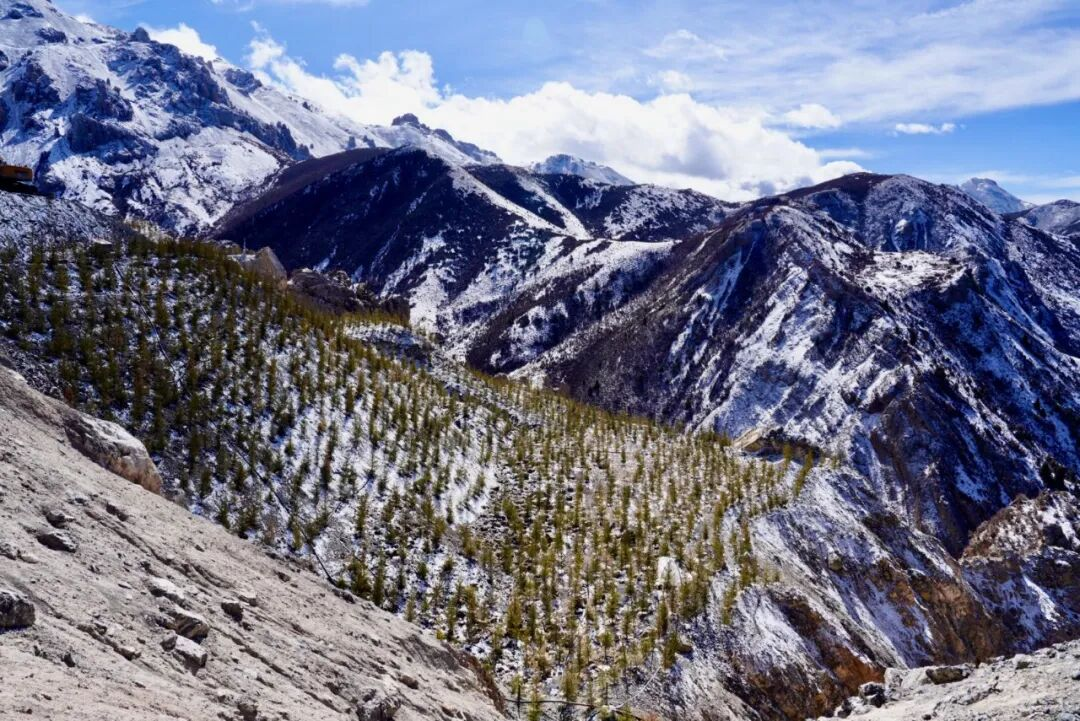 昔日的碎石陡坡,现在已经平整为绿意盎然的树林。记者 群旦次仁  摄